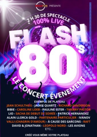 Vivez les folles nuits FLASH 80'S c'est la certitude de remplir votre salle qui affichera toujours complet. Avec notre tournée c'est vous qui choisissez la conception de votre plateau sur mesure et selon votre budget.