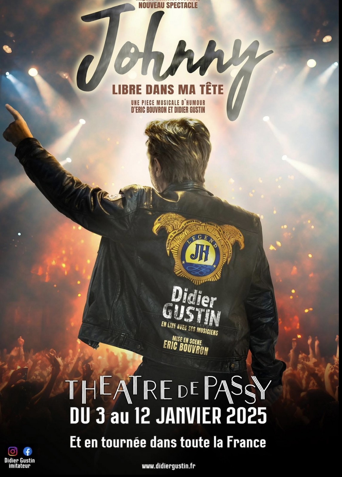 Avec son dernier Spectacle JOHNNY Libre dans ma tête Didier Gustin est en tournée avec Megafun Prod  et toujours ces 2 autres shows avec 2 versions (avec ou sans musiciens)