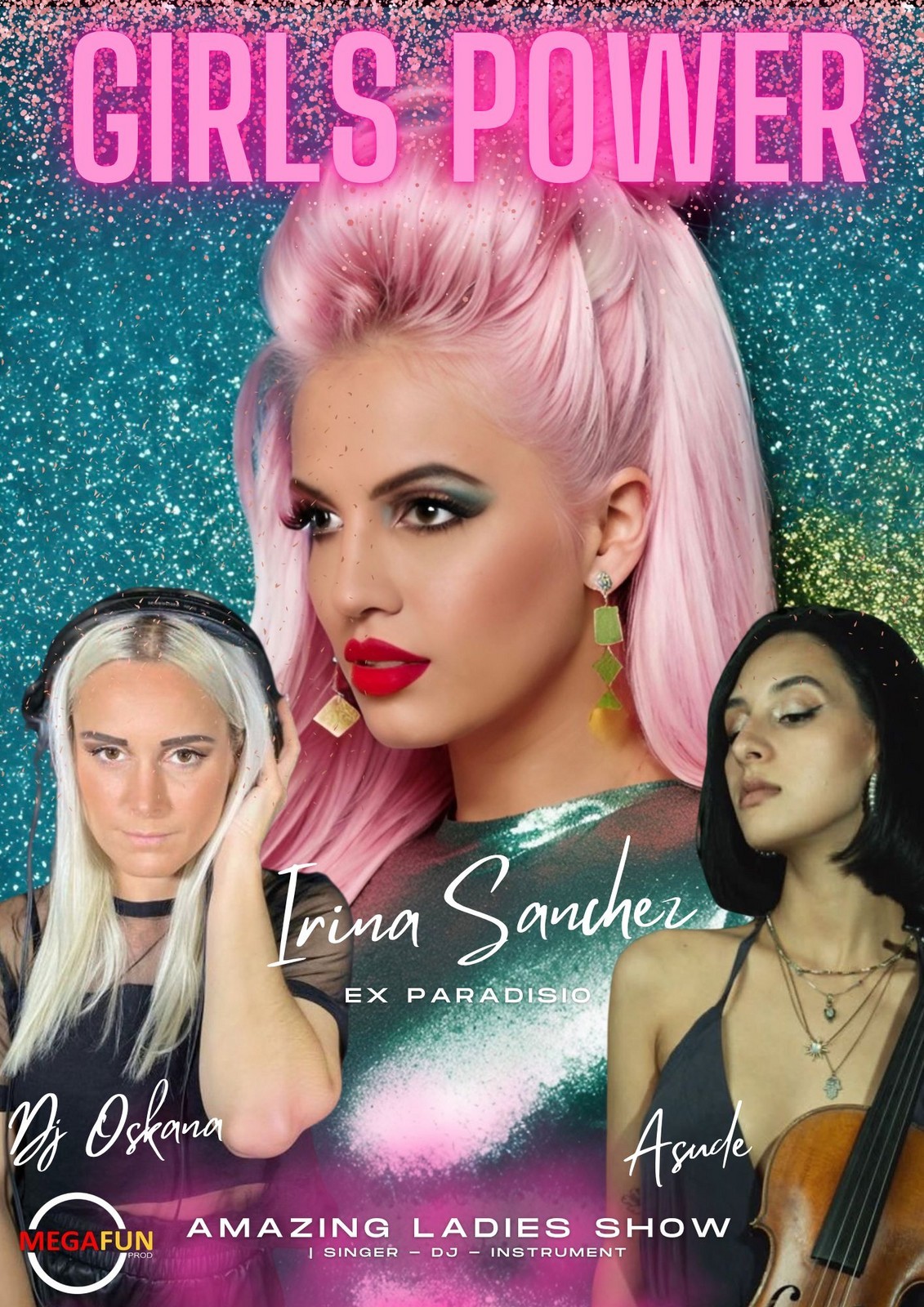 c est la rencontre de 3 artistes féminines de talent, Irina Sanchez, ancienne chanteuse du groupe Paradisio, vous fera découvrir son catalogue pop latino acidulé mais également quelques covers bien connues de tous.